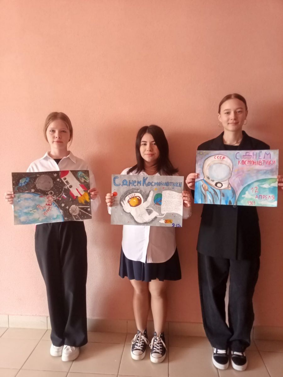 12 апреля в нашей школе учитель физики Хафизова З. М. провела конкурс стенгазет, посвящённый Дню космонавтики. Как праздник " День космонавтики" стал отмечаться с апреля 1962 года. Ровно 64 года назад вся планета узнала имя Юрия Гагарина и навсегда запомнила его удивительную судьбу.