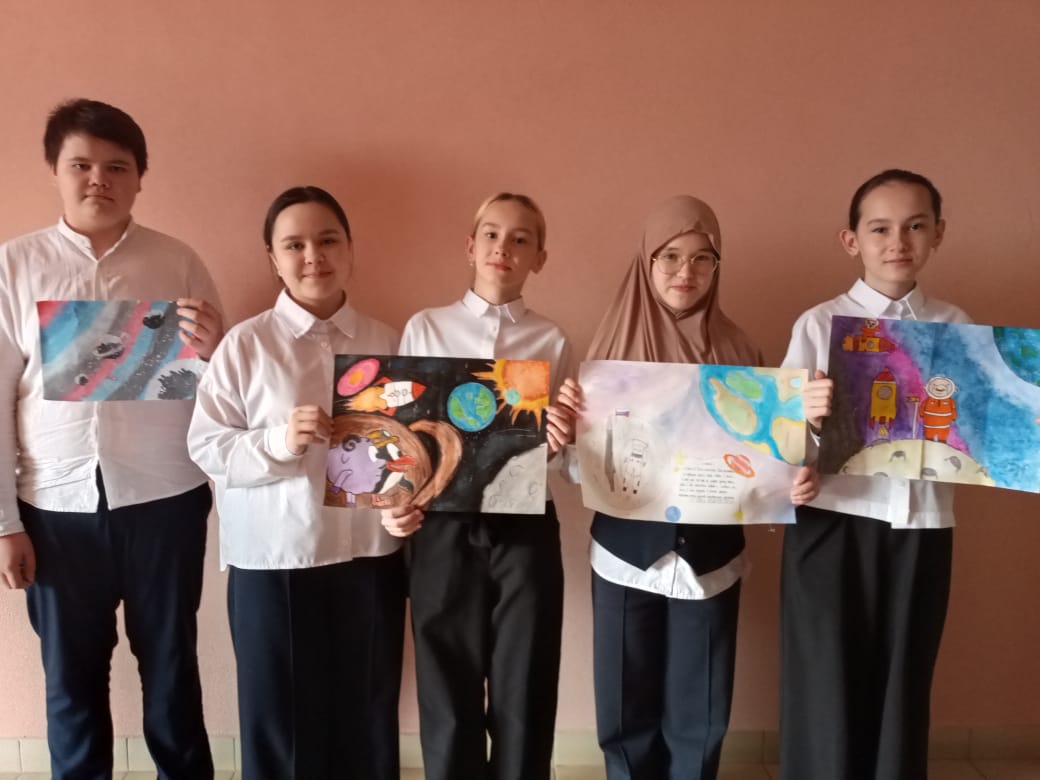 12 апрель көнне мәктәбебездә физика укытучысы Хафизова З.М. Космонавтика көненә багышланган стена газеталары конкурсы үткәрде. "Космонавтика көне" бәйрәме буларак 1962 елның апреленнән билгеләп үтелә башлый. Нәкъ 64 ел элек бөтен планета Юрий Гагаринның исемен белгән һәм аның гаҗәеп язмышын мәңгегә истә калдырган.