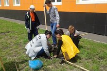 Сегодня ребята работали на пришкольном участке: посадили саженцы деревьев.