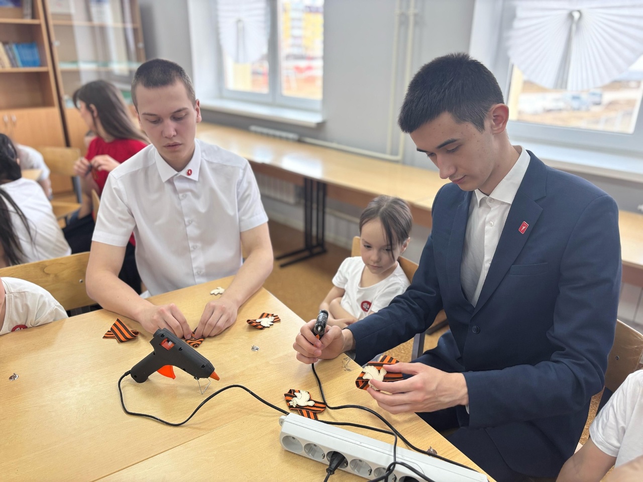 Мастер –класс по изготовлению значков «Символ Победы» - символа памяти и воинского подвига во время Великой Отечественной войны, посвящённый 80 - летию Победы в ВОВ. Сегодня воспитанники пилотной группы Движения Первых «Берёзка» совместно с учащимися МБОУ СОШ №1, участниками движения изготовили сегодня значки своими руками.В наши дни акция «Георгиевская ленточка» - это неотъемлемый атрибут Дня Победы, все люди, и взрослые, и дети, уже традиционно повязывают её на одежду, выражая в этот день своё уважение ветеранам и памяти о Великой Отечественной войне.