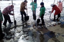 Экологический субботник во дворе школы.Очистка территории от снега.