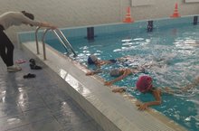 Во время осенних каникул в школьном бассейне проходят занятия по плаванию.