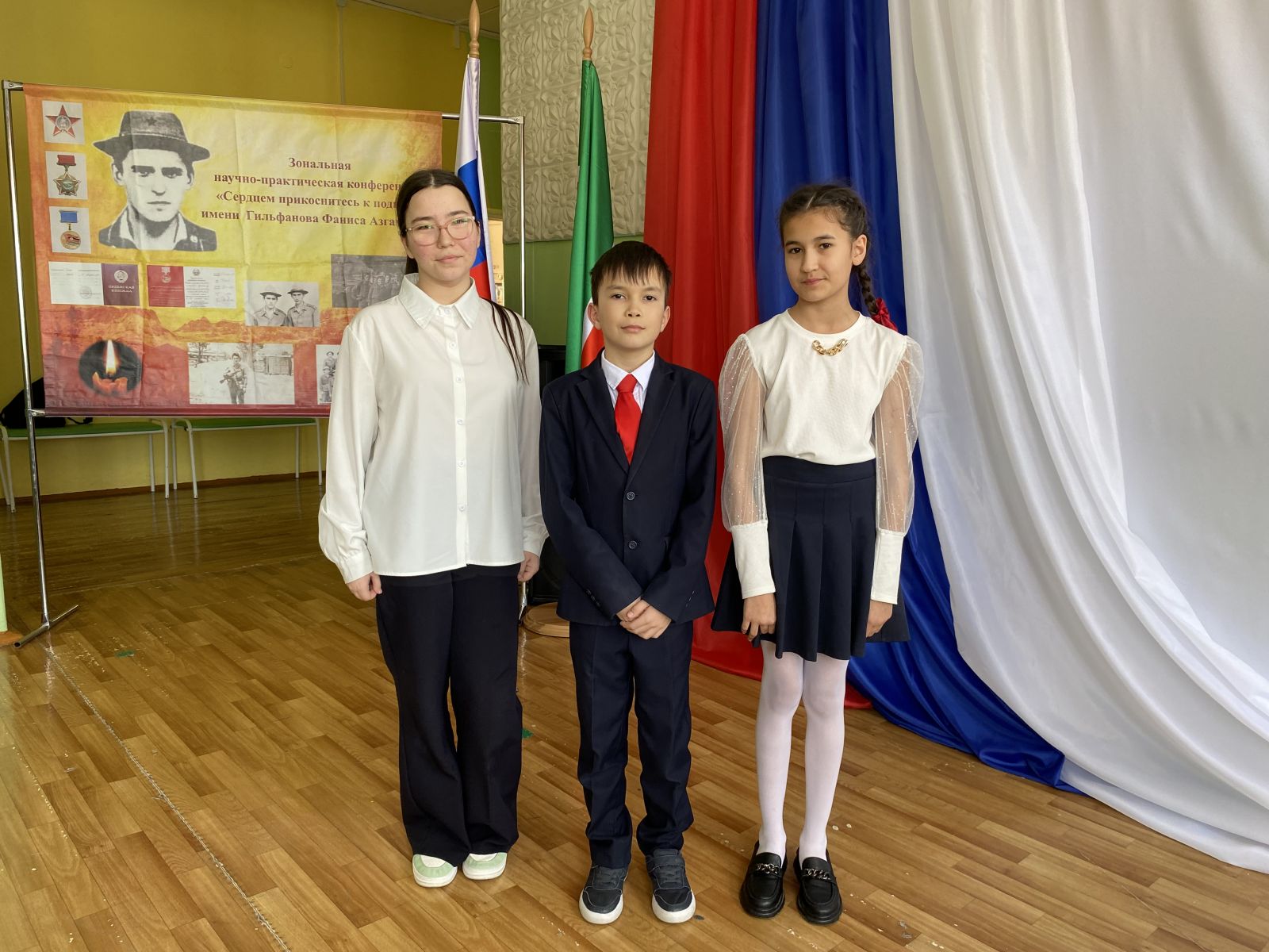 Поздравляем призеров, Давлетшина С.Д., Салимзянову С.С. и Рахмаеву А.Л., с успешной защитой проектных работ на VI Зональной научно-практической конференции «Сердцем прикоснитесь к подвигу» имени Гильфанова Фаниса Азгамовича (Патриотическое направление). Пусть эта победа станет одной из многих, которые еще ждут вас впереди! Огромная благодарность Сабуровой Г.Л, Саргузиной Г.Р, Яфизовой Л.Р за подготовку!