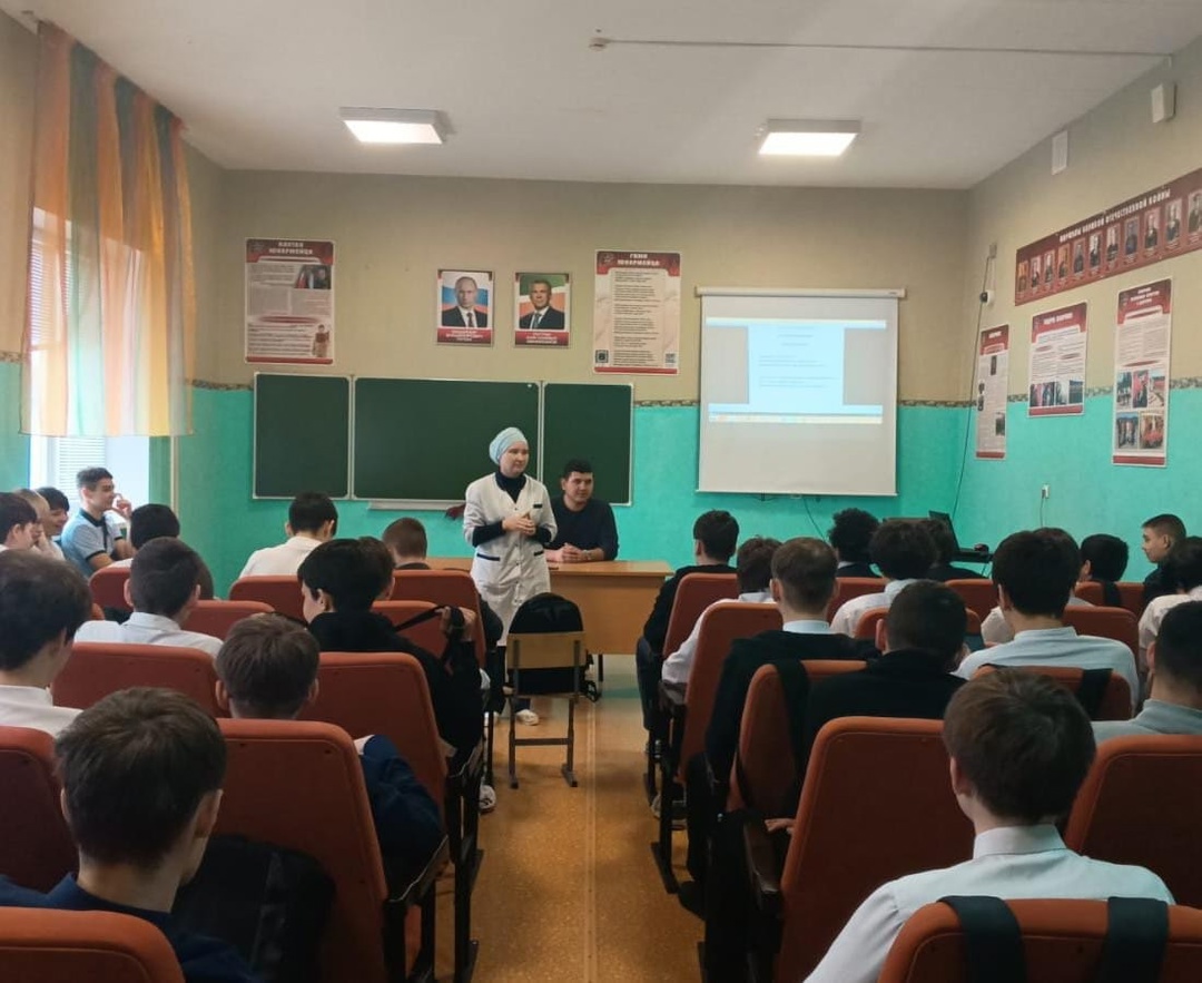 Сегодня для юношей 8- 9 классов было организовано выступление врача хирурга Азнакаевской ЦРБ Акмырадова А.и совместно с фельдшером школы Хабибуллиной Ф. на тему: "Половое воспитание юношей и подростков". Разобрали вопросы гигиены, защиты от ЗППП, мужского здоровья . В конце беседы юноши задали вопросы и получили развернутые ответы.