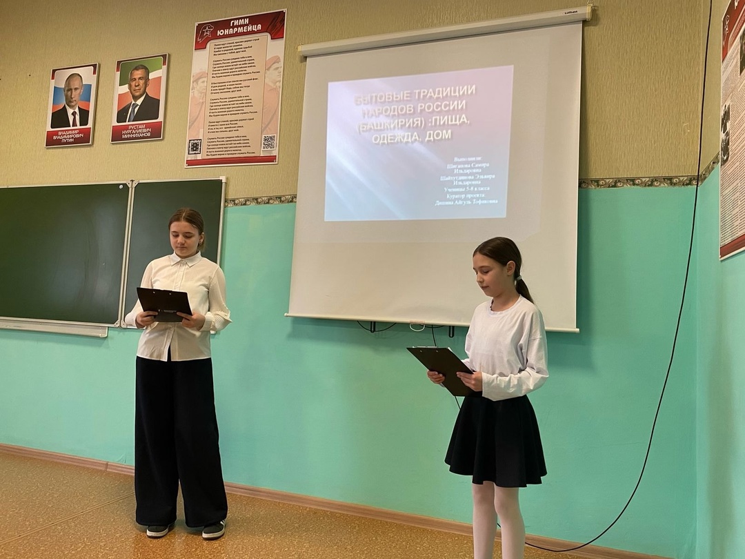 В рамках предмета основы духовно-нравственной культуры народов России прошла защита проектов учеников 6-ых классов.Свои проекты ребята оформляли на бумаге, а также подбирали декорации для лучшей презентации своего проекта.Среди работ были представлены проекты "Бытовые традиции народов России:Пища, одежда, дом", "Многообразие культур России", "Человек и культура", "Культурная карта России", "Современный мир: самое важное".