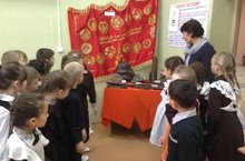 В рамках подготовки к 70-летию Победы Великой Отечественной войны Лотфуллина В.Р., руководитель музея, провела обзорную экскурсию по школьному музею с учащимися начальных классов. Ученики ознакомились с экспозициями военного времени.