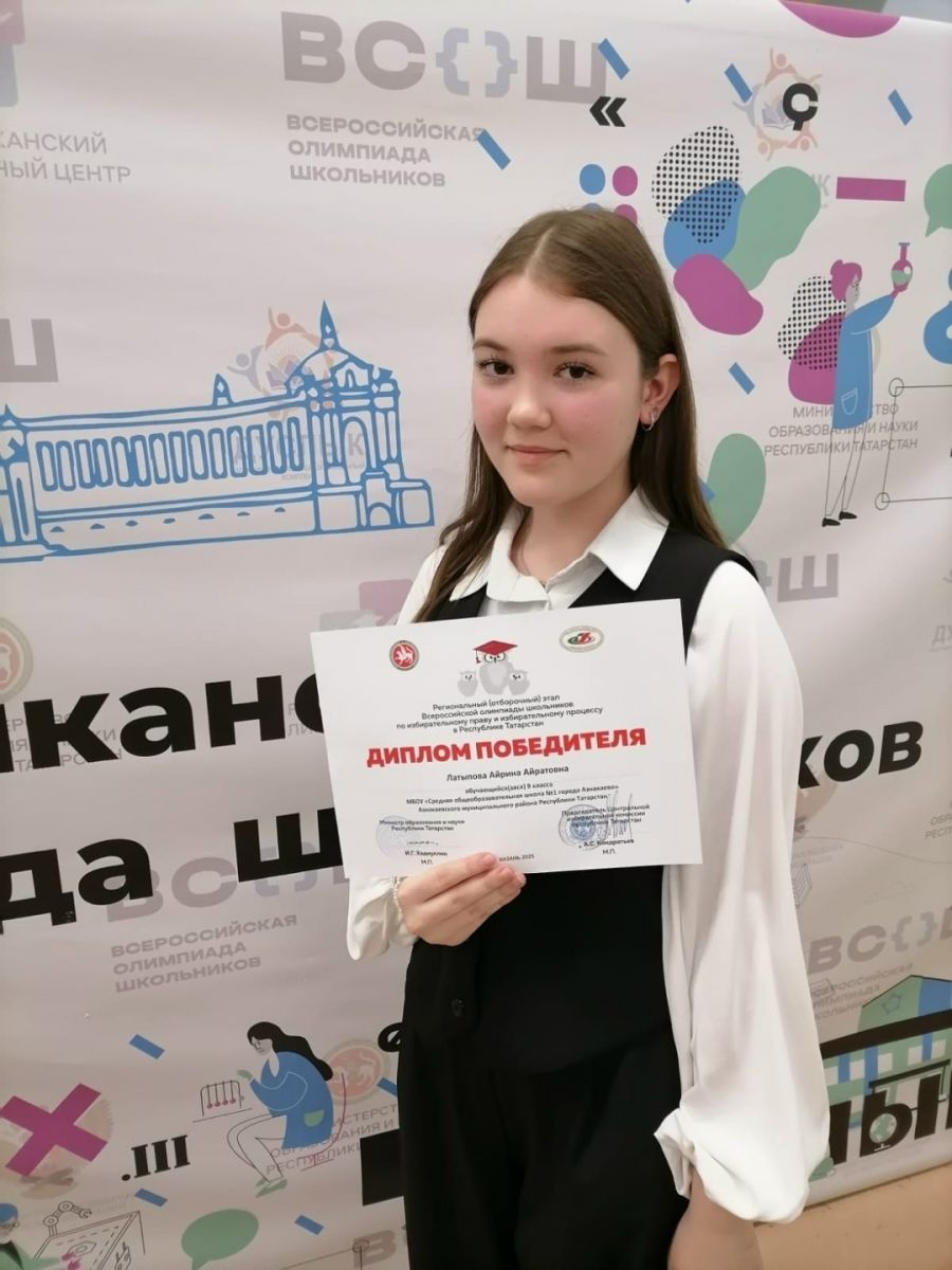 На региональном (отборочном) этапе ВсОШ по вопросам избирательного права и избирательного процесса Латыпова Айрина (9В класс), Латифуллина Ясмина (10 класс) стали победителями, Мирзахметов Яромир (10 класс) - призер. Пусть знания сияют ярче звезд, вдохновение вдохновляет на новые победы, а стремление к совершенству ведет вас к вершинам успеха!