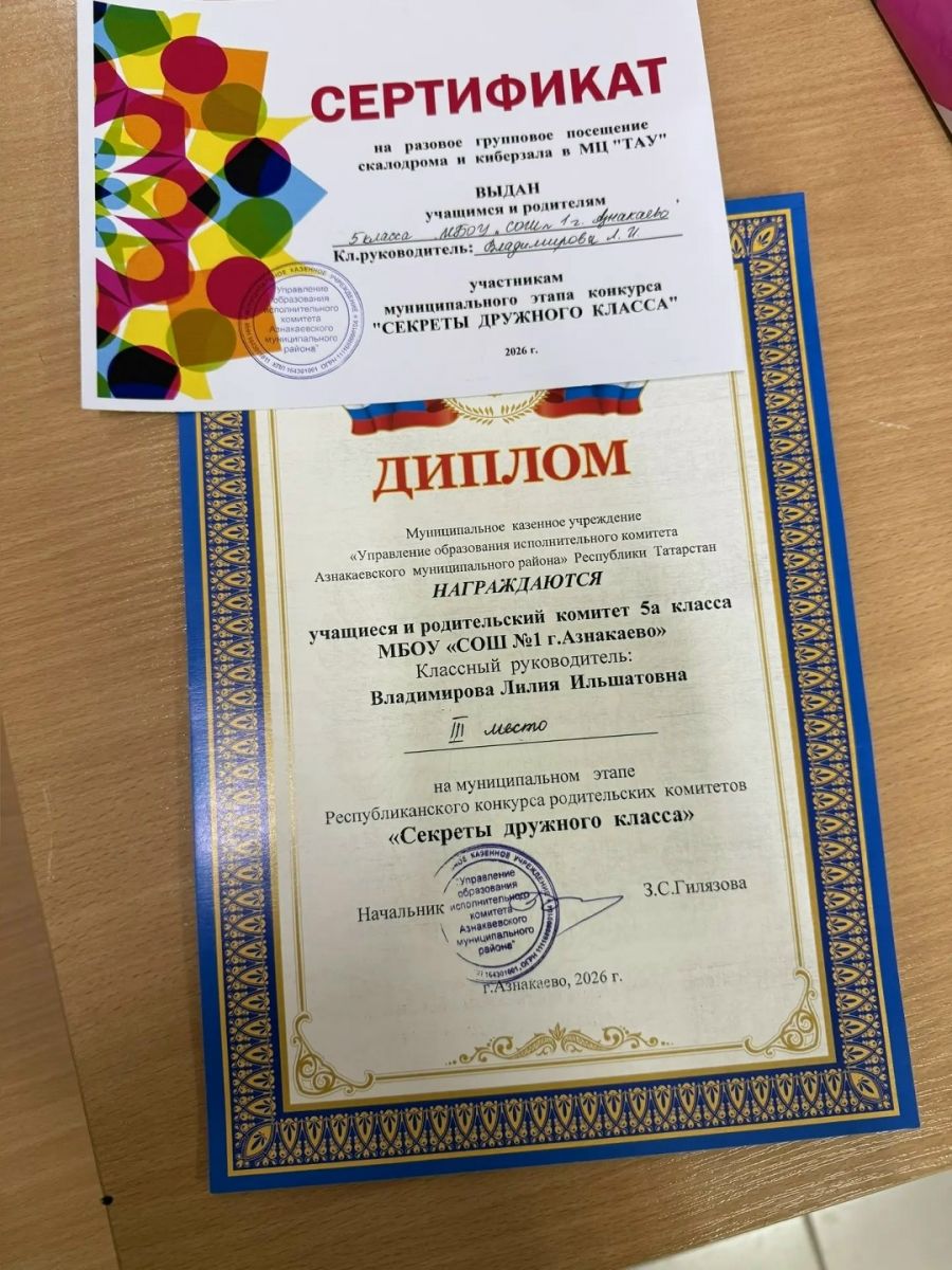2026 нчы елның 2-4 февраль көннәрендә Республика олимпиада үзәгенең сәламәтләндерү һәм белем бирү «Дуслык» комплексында, рус мәктәпләренең татар төркемнәрендә белем алучы укучылар өчен татар теленнән республика олимпиадасының йомгаклау этабында 10 нчы сыйныф укучысы Шайхулова Нәргизә призёр булды. Укытучыбыз Саргузина Гүзәл Рәсим кызына Нәргизәне олимпиадага әзерләгәне өчен рәхмәтебезне белдерәбез.