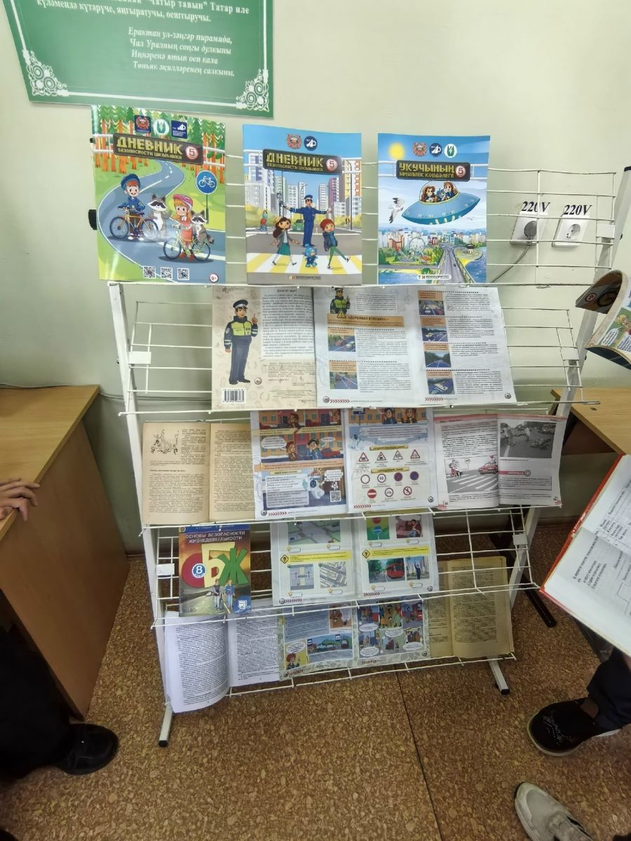 Юл хәрәкәте куркынычсызлыгы атналыгы кысаларында безнең мәктәптә юл хәрәкәте кагыйдәләренә, юлларда куркынычсызлык һәм юл-транспорт һәлакәтләрен профилактикалауга багышланган китап күргәзмәсе оештырылды.