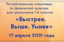 Республиканская олимпиада по физической культуре для школьников 1-6 классов «Быстрее. Выше. Умнее»/ 1-6 нчы сыйныфлар өчен физик тәрбия буенча “Җитезрәк. Биегрәк. Зирәгрәк” республика олимпиадасы 17.04.2021