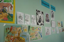 В рамках Недели русского языка и литературы идет конкурс рисунков, посвященных Году Толстого, в котором принимают участие учащиеся 5-9 классов. Выставка творческих работ представляет собой не только фрагменты произведений Толстого, но и других писателей-юбиляров, таких, как М. Горький, И.С.Тургенев и др.