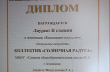 Вокальный коллектив "Солнечная радуга" школы стал лауреатом 2 степени Республиканского фестиваля-конкурса Браво-2024 в номинации "Воспитание искусством".Руководитель: Фахртдинова Р.А. Поздравляем победителей и желаем даьнейших творческих успехов!