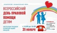 21 ноября 2023 года в рамках Всероссийского дня правовой помощи детям в Азнакаевском районе с 13 ч до 16ч специалисты управления образования, социальной защиты, подразделения по деам несовершеннолетних и комиссии по делам несовершеннолетних и защите их прав ответят на ваши вопросы в области защиты прав детей.