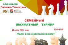 28 июля в городе Азнакаево на Площади Татарстана состоится семейный шахматный турнир.Приглашаются любители шахмат .