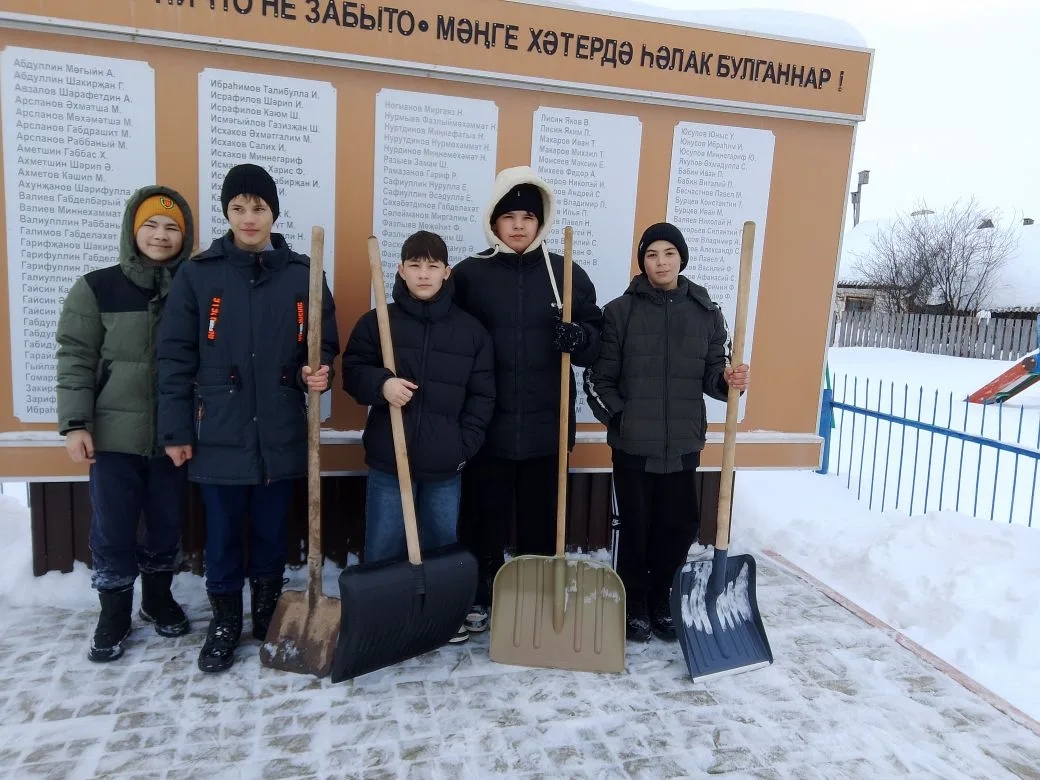 Очистка памятника от снега со старшеклассниками нашей школы.