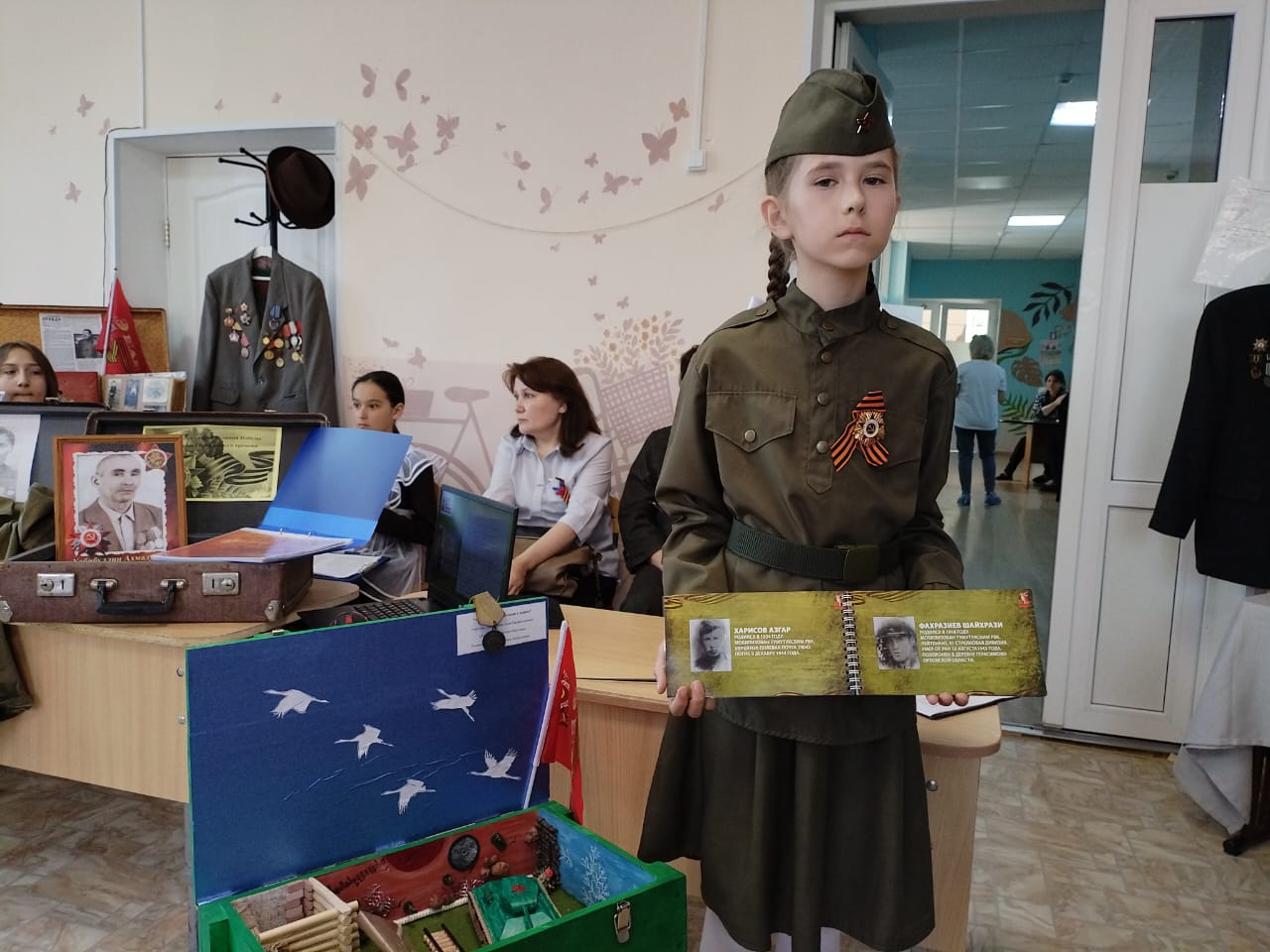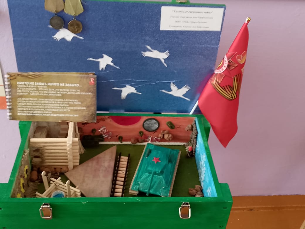 Ученица 4 класса Хаертдинова Алия участвовала в муниципальном конкурсе "Музей в чемодане", посвящённый году Защитников Отечества и 80-летию Победы. Руководитель Юсупова Э. Л.