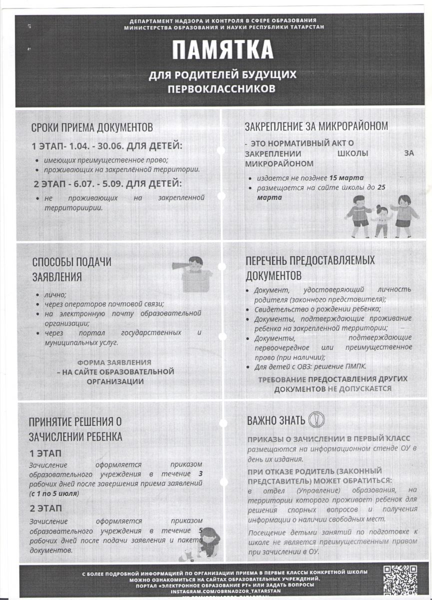 Памятка для родителей будущих первоклассников.Булачак беренче сыйныф укучыларының әти-әниләре өчен белешмәлек.