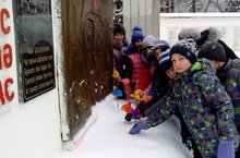 Билгесез солдатларны искә алып Чалпы укучылары Һәйкәлгә чәчәкләр куйдылар.