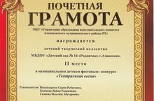 Поздравляем наших артистов их родителей и педагогов заслуженным 2 местом на муниципальном конкурсе театрализованных представлений для дошкольников «Театральная весна». Желаем дальнейших успехов в творческой деятельности.