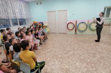 Юл хәрәкәте куркынычсызлыгы дәүләт бюджет учреждениесенең профилактика бүлеге начальнигы А.Р. Сагадатуллина балалар белән юлларда үз - үзеңне тоту кагыйдәләре һәм СВЭ куллануның мөһимлелеге турында профилактик әңгәмә уздырды. Балалар «Сакла» интернет-порталыннан «Юл күзәтүчеләре» исемле мультфильм белән таныштылар.