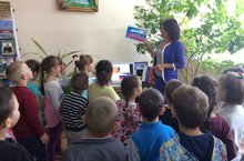 Россия Федерациясенең Дәүләт флагы көне. Район китапханәсендә балалар РФ символикасы белән таныштылар.