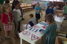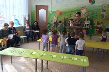 Совместное мероприятие с сотрудниками ОГИБДД, родителями и детьми. Инспектор по пропаганде ОГИБДД Исхаков Ильдар Исмагилович и начальник отделения профилактики в Азнакаевском районе ТУ в г.Альметьевске ГБУ "БДД" Сагдатуллина Альмира Рифовна ознакомили родителей со статистикой дорожных происшествий, раздали буклеты пропагандирующие безопасность на дороге, особое внимание обратили на ношение детьми световозвращиющих элементов.