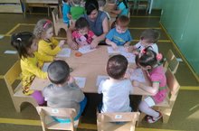 Дополнительные образовательные услуги, кружок "Акварелька". Дети второй младшей группы рисуют пальчиками.
