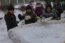 Наконец-то выпало много снега. Дети смогут построить большую снежную гору.
