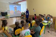 Начальник ОП ГБУ "БДД" Сагдатуллина А.Р. провела беседу с детьми подготовительной к школе группы о безопасном поведении на дороге с показом мультфильма "Дозорные дорог".