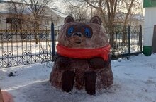 Такого милого Винни Пуха слепили из снега педагоги для детишек.