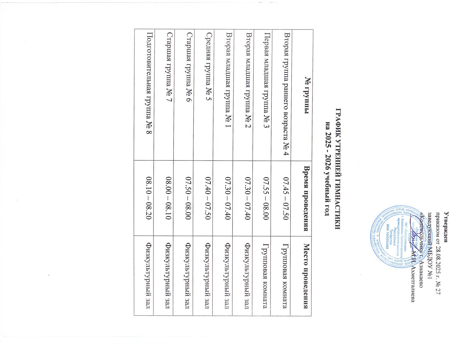 График утренней гимнастики на 2025-2026 учебный год