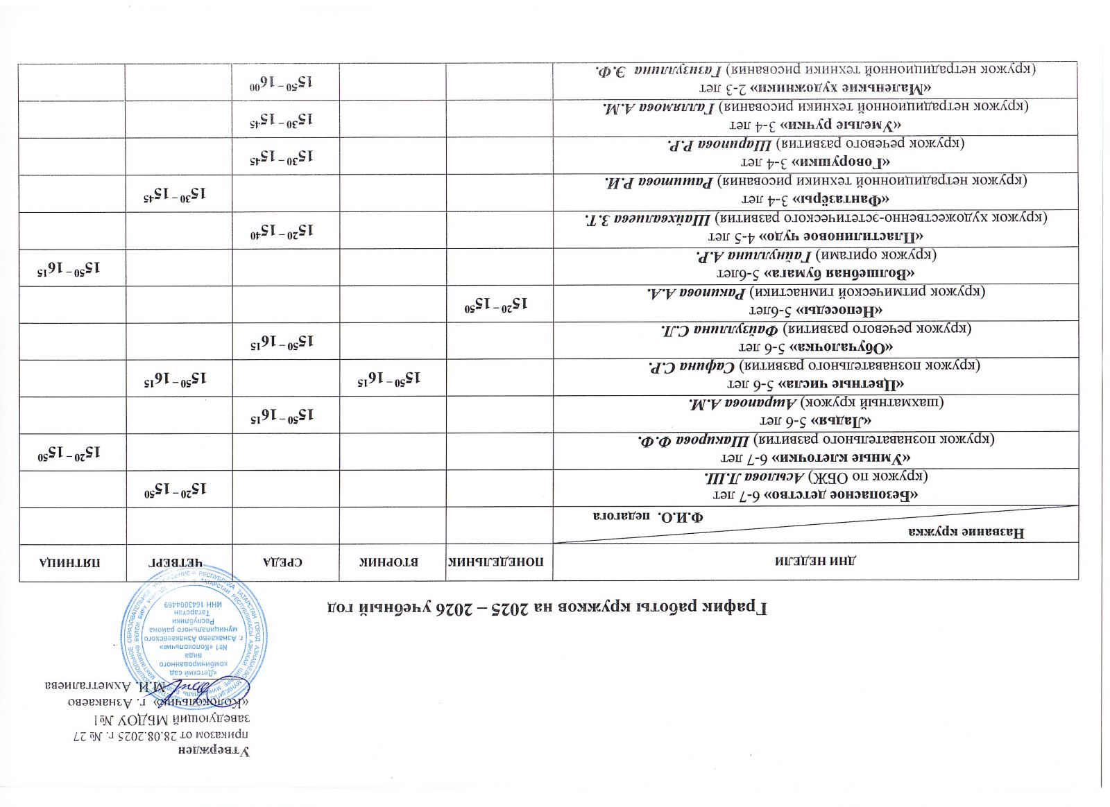 График работы кружков на 2025-2026 учебный год