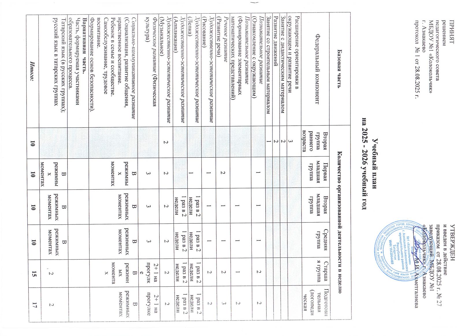 Учебный план на 2025-2026 учебный год