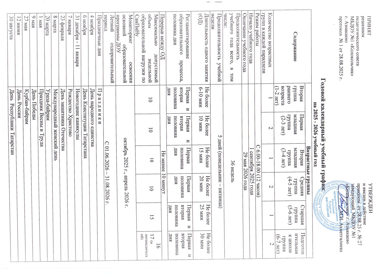 Годовой календарный учебный график на 2025-2026 учебный год