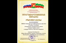 Благодарственное письмо от главы Азнакаевского муниципального района 29.01.2014