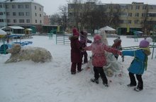 Зима - раздолье для зимних игр и забав. Сколько веселья, радости и удовольствия доставляют детям игры в снежки, катание на санках. А педагоги ДОУ порадовали своих воспитанников красивой, нарядной, снежной елочкой и, конечно же, символом Нового 2015 года.