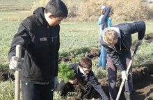 Отряд "Юнармия",СМС-дети,активисты СНТ и РДШ приняли участие в акции по посадке деревьев вдоль береговой линии реки Мелля. 13.10.2017