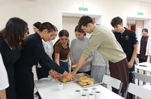 Ребята под руководством наших мастеров-поваров готовили закрытую пиццу, а пока она готовилась наши амбассадоры провели для них экскурсию по техникуму. -