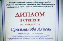 Сулейманова Ляйсан заняла 2 место в Республиканском конкурсе творческих работ "Рабочей профессией славится мой Татарстан!" посвященный 100- летию образования ТАССР 17.03.2021