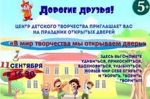 Дорогие друзья! 11.09.2019 в 16.30 МБОДО "ЦДТ г. Азнакаево" приглашает вас на праздник открытых дверей! 23.08.2019