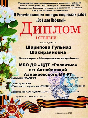 Муниципальная бюджетная организация дополнительного образования «Центр детского творчества «Развитие» п.г.т. Актюбинский Азнакаевского муниципального района Республики Татарстан
