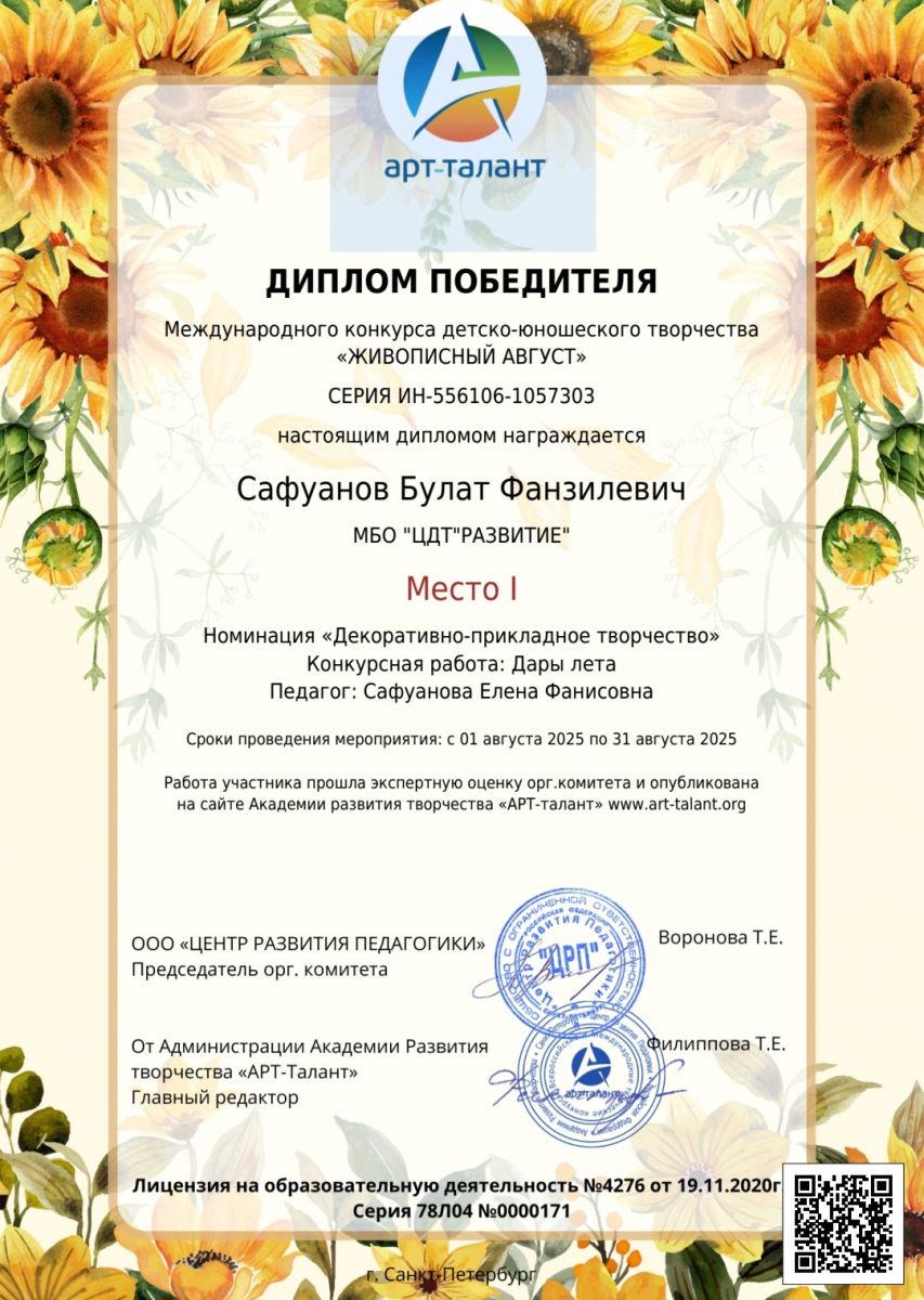 Муниципальная бюджетная организация дополнительного образования «Центр детского творчества «Развитие» п.г.т. Актюбинский Азнакаевского муниципального района Республики Татарстан