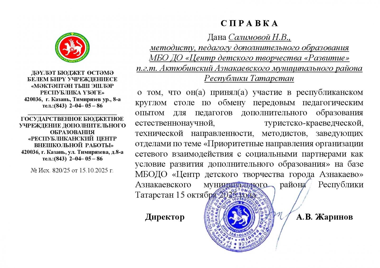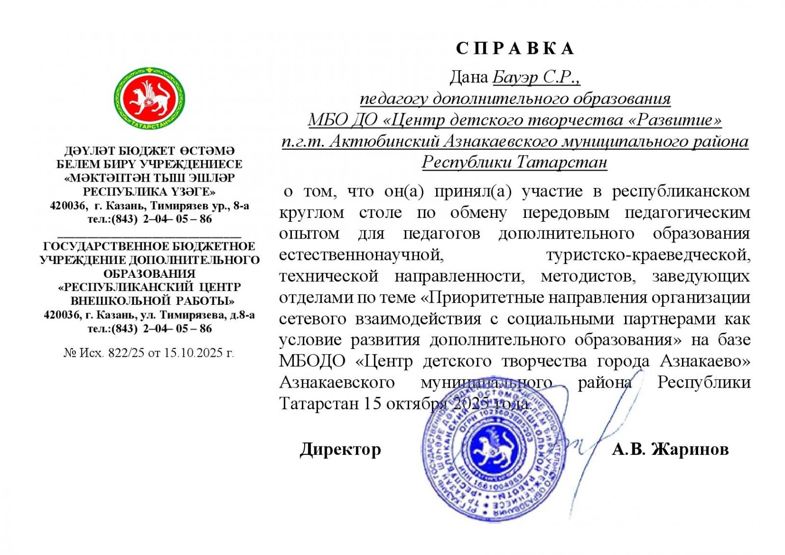 Короткое название: МБО ДО "ЦДТ "Развитие" п.г.т.Актюбинский Азнакаевского муниципального района РТ