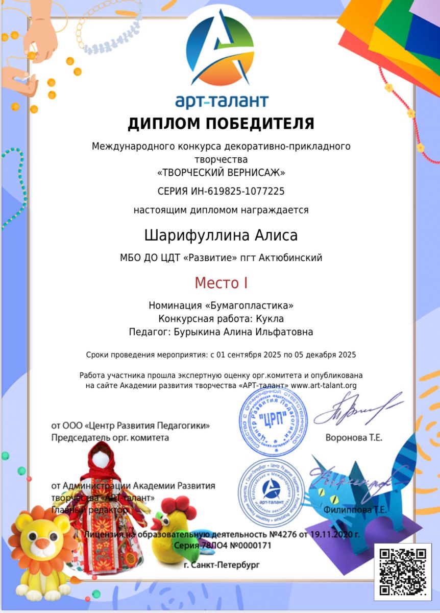 Муниципальная бюджетная организация дополнительного образования «Центр детского творчества «Развитие» п.г.т. Актюбинский Азнакаевского муниципального района Республики Татарстан
