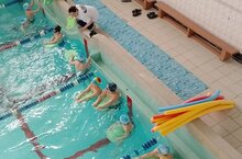 Воспитанники д/с№3 на занятии под руководством ПДО Гусевой Айгуль Мустакимовны продолжили обучение технике движений ногами при плавании кр/гр с опорой о бортик и с опорой о доску. Плавание является адекватной для детского организма физической нагрузкой, поскольку в цикле плавательных движений напряжение и расслабление мышечных групп последовательно чередуются. Также плавание благотворно влияет на важнейшие системы жизнеобеспечения ребенка, это происходит благодаря ритмичной работе мышц, необходимости преодолевать сопротивление воды. Улучшается сердечная деятельность, подвижность грудной клетки, увеличивается жизненная емкость легких.