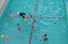 Воспитанники 1-го года обучения продолжили освоение водной среды. Под руководством ПДО Муртазиной М.М. обучающиеся передвигались по акваторию бассейна различными способами и закрепляли умение открывать глаза в воде в игре «Кто спрятался под водой? »