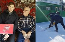Отряд "Юнармии" принял участие в акции "Посети ветерана". Они поздравили Гимазетдинова Ф.,ветерана ВОВ, с Днем защитников Отечества, и очистили двор от снега .