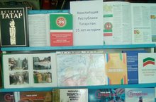 В рамках недели школьных библиотек, а также Парламентского урока в школе была организована выставка книг на тему: "Конституция Татарстана:25 лет истории"