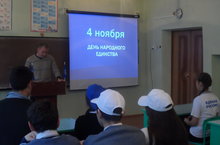 1 ноября прошел Всероссийиский урок, посвященный Дню народного единства. Во время классного часа учитель обществознания Шайдуллин И.Н. рассказал ученикам об истории возникновения праздника.