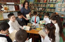Всемирный день чтения вслух, библиотекарь Чернова А. Ф. с учащимся начальной школы провела акцию "Читаем вместе, читаем вслух", "Бергэ укыйбыз, кычкырып укыйбыз"